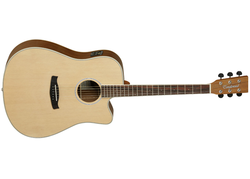 Tanglewood Discovery DBT DCE Dreadnought dengan bentuk bodi dreadnought cutaway, bagian atas dari kayu spruce, bagian belakang dan samping dari kayu Ovengkol, fingerboard rosewood dan EQ Tanglewood TEQ-3BT.