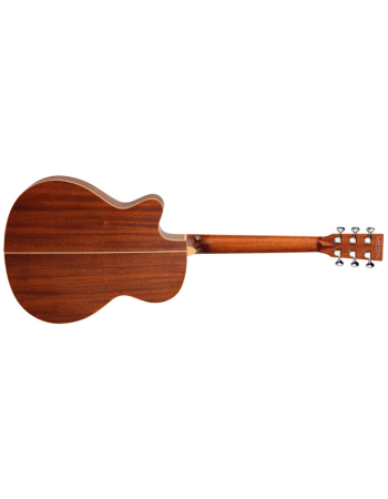 Melengkapi bagian atas premium, bagian belakang dan samping dibuat dari kayu Mahoni, yang terkenal dengan kualitas resonansi yang hangat dan suara midrange yang jelas. Kombinasi kayu tonewood ini menghasilkan suara yang kaya secara harmonis dengan nada rendah yang kuat, nada menengah yang hidup, dan nada tinggi yang berkilauan, memberikan pengalaman sonik yang menawan baik bagi pemain maupun pendengar.