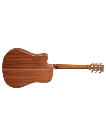 Melengkapi bagian atas Englemann Spruce, bagian belakang dan samping dibuat dari kayu Mahoni, yang dihormati karena kualitasnya yang hangat dan beresonansi serta kehadiran midrange yang jelas. Kombinasi nada-kayu ini menghasilkan suara yang seimbang dan menyeluruh dengan nada rendah yang kuat, nada menengah yang halus, dan nada tinggi yang berkilauan, memberikan palet suara serbaguna yang unggul dalam berbagai gaya permainan dan genre musik.