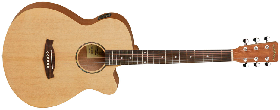 SHAPE Super Folk Cutaway TOP Spruce BACK Mahogany SIDES Mahogany NECK (MATERIAL) Mahogany NECK (BUILD) Two Piece FINGERBOARD Rosewood BRIDGE Rosewood BINDING N/A SADDLE ABS White, Compensating NUT (WIDTH) ABS White (43mm) SCALE LENGTH 650mm BRIDGE PINS White ABS MACHINE HEADS Chrome Die Cast FINISH Natural Matt EQ Tanglewood TEQ-2BT STRINGS Bronze Light